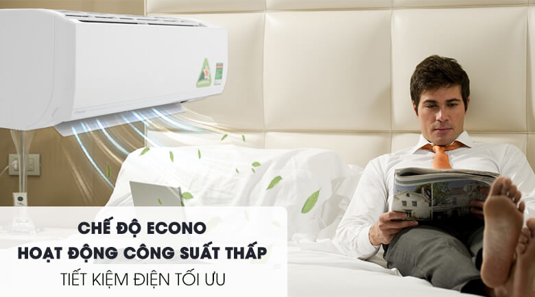 Chế độ Econo được tích hợp trên hầu hết các dòng máy lạnh mới, đây là một tính năng phổ biến có thể làm hài lòng cả những khách hàng khó tính nhất. Đặc biệt, nó thích hợp để sử dụng vào ban đêm trước khi đi ngủ, khi bật chế độ Econo, luồng gió nhẹ nhàng sẽ giúp bạn có một giấc ngủ ngon hơn và không trở lạnh khi máy lạnh hoạt động cả đêm.